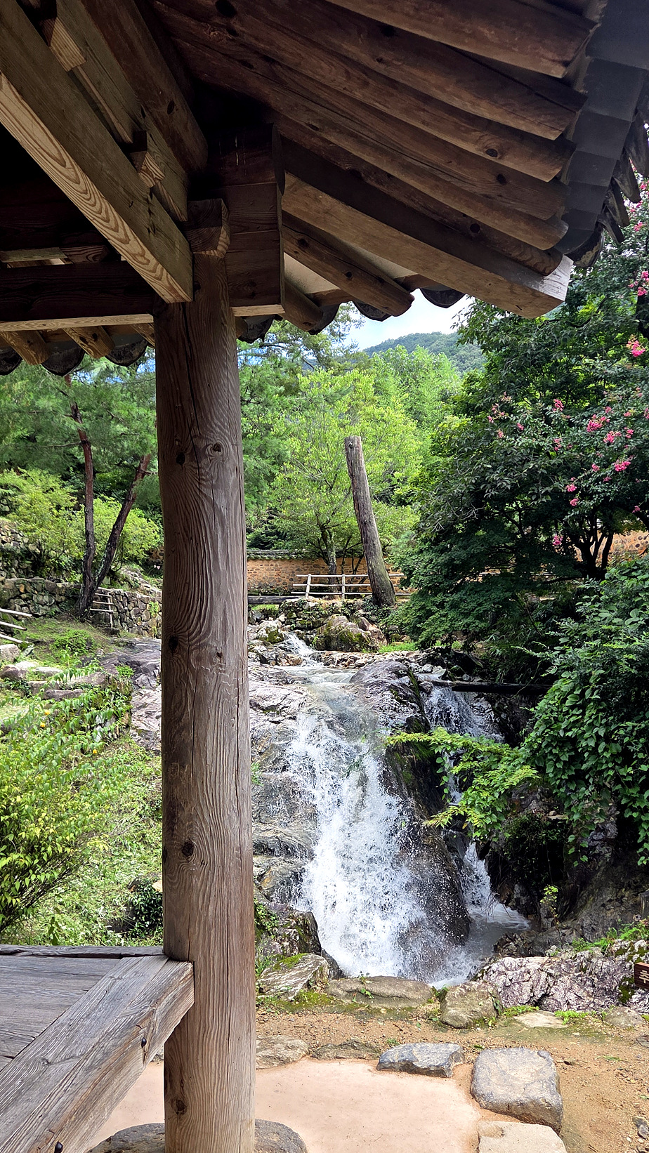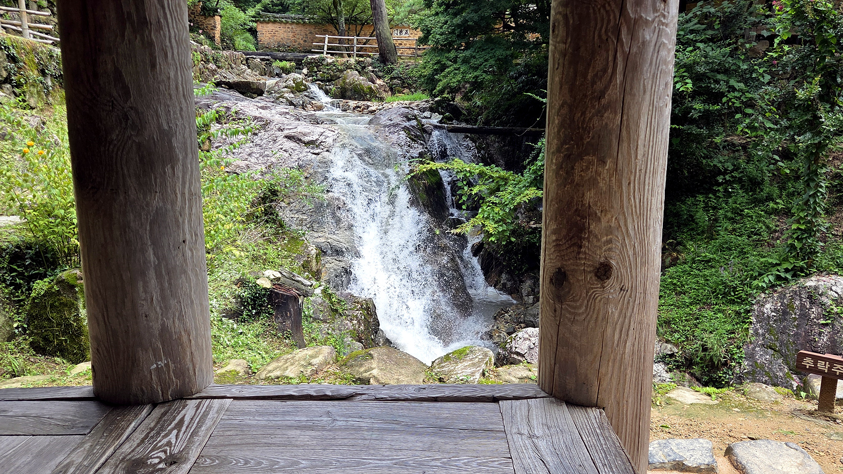 정자와 어우러진 폭포