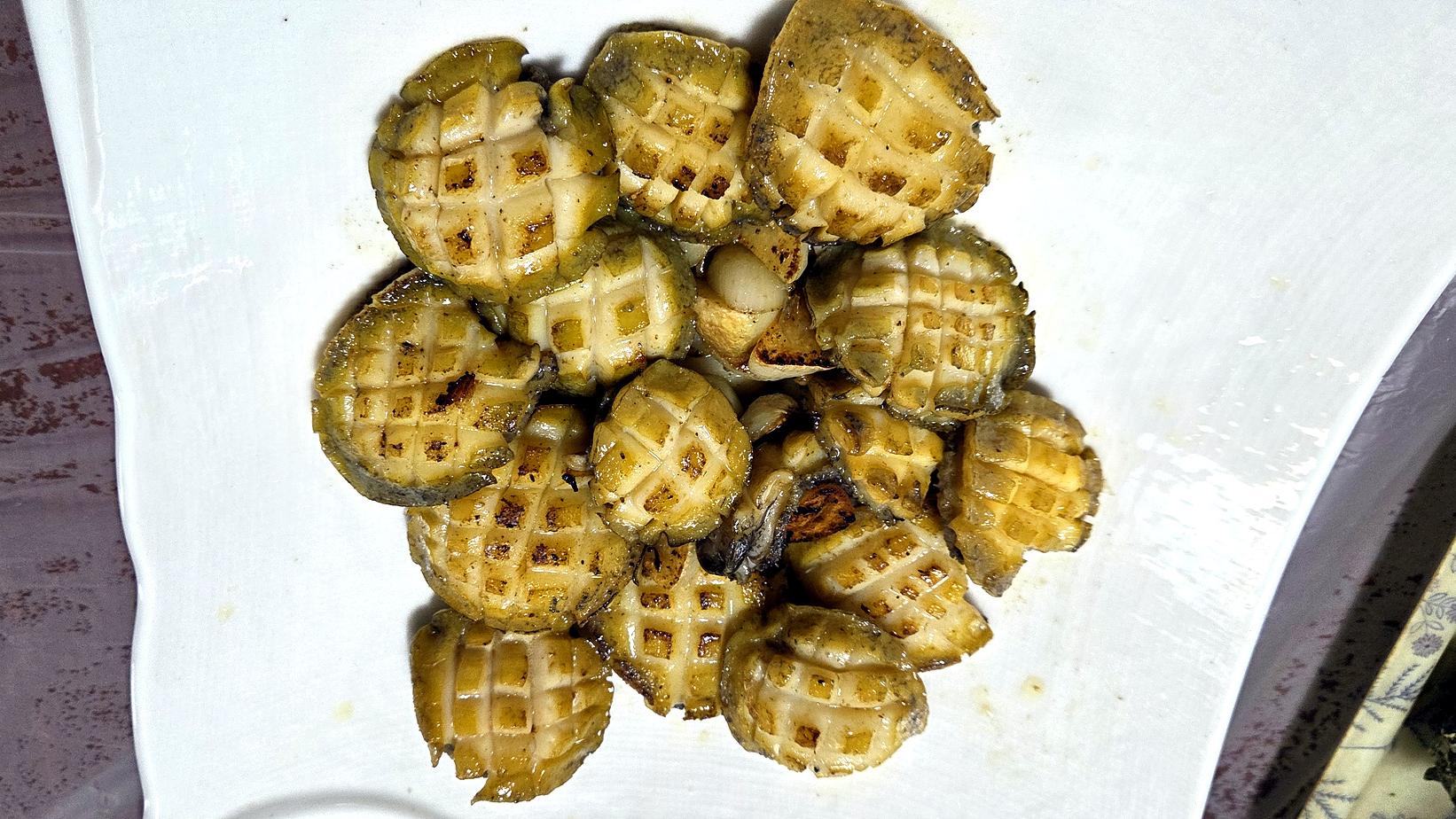 딴 전복을 썰어서 먹어본다. 바로 잡아 아주 신선하고 맛있네요.