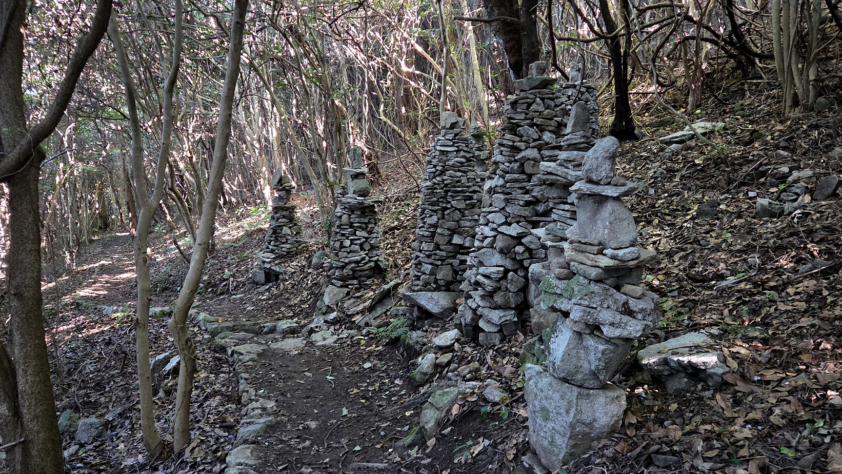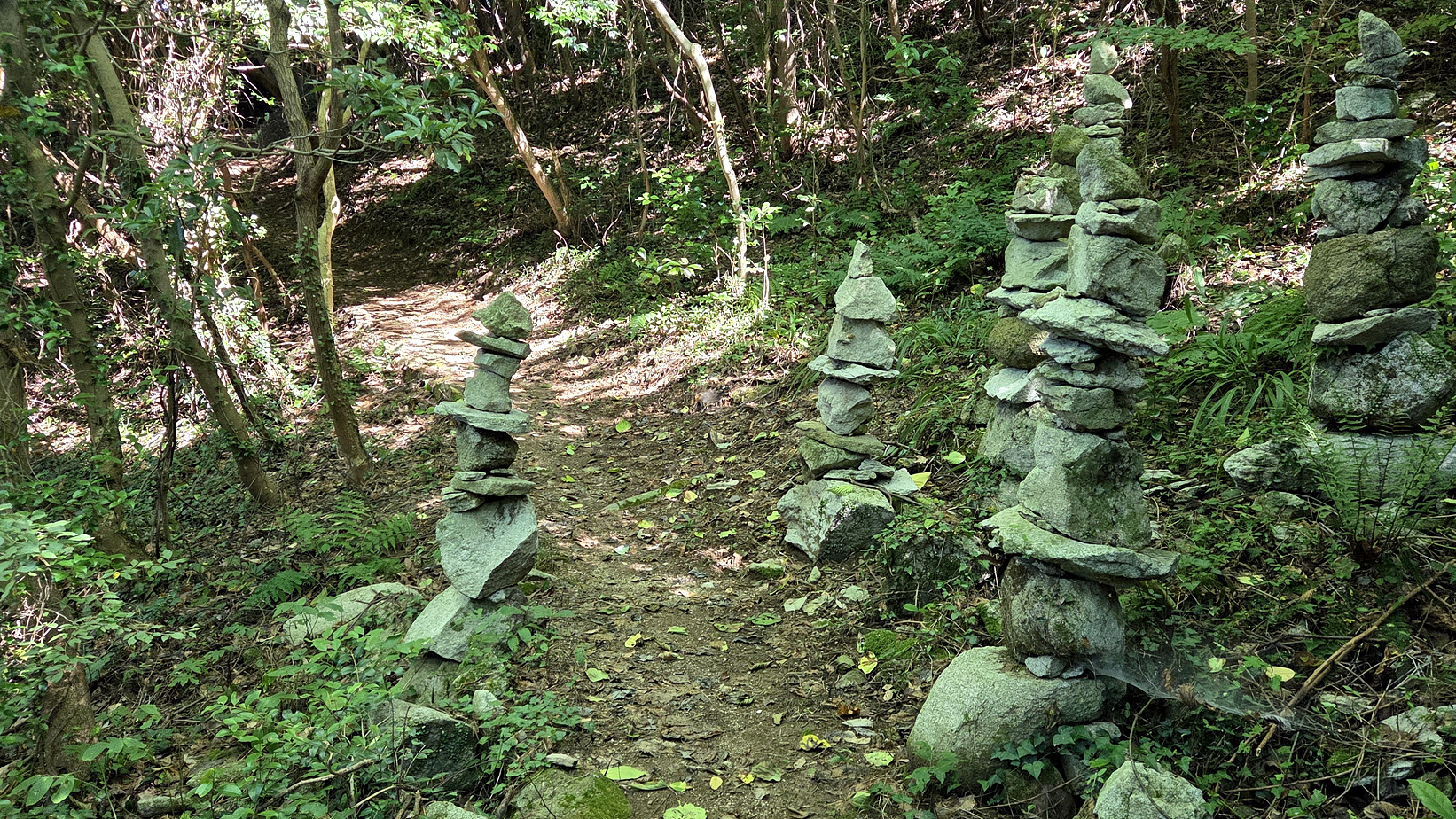 재에 올라서니 빗자루가 보이고 돌탑을 많이 쌓아 놓았네요. 내려와서 들으니 퇴직한 공무원이 매일 올라와서 돌탑을 쌓았다고 하네요. 길도 청소를 해서 아주 깨끗하네요.