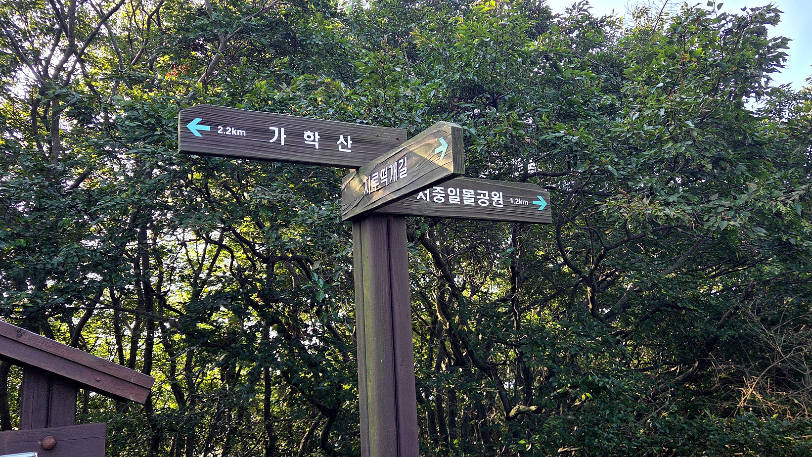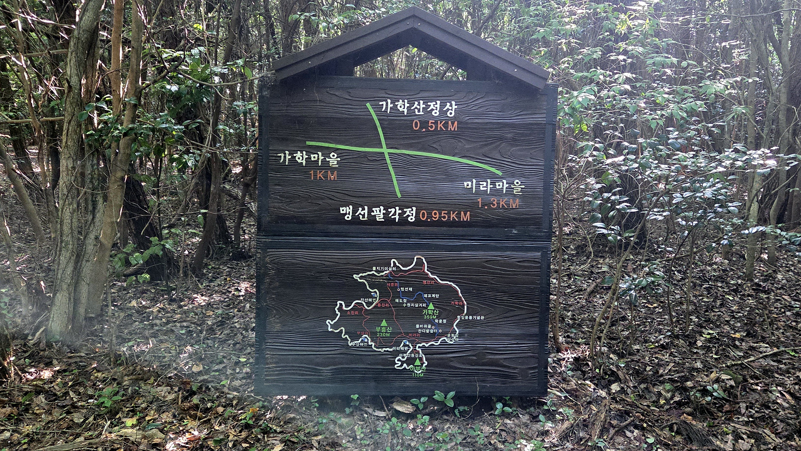 학운정, 이곳에서 쉬고 있는데 여자 두 분이 올라오네요. 오늘도 가학산을 전세 내서 걷는다고 생각했는데 두 분을 만났네요. 여기에서 미라까지 1.0km를 더 가야 되네요.