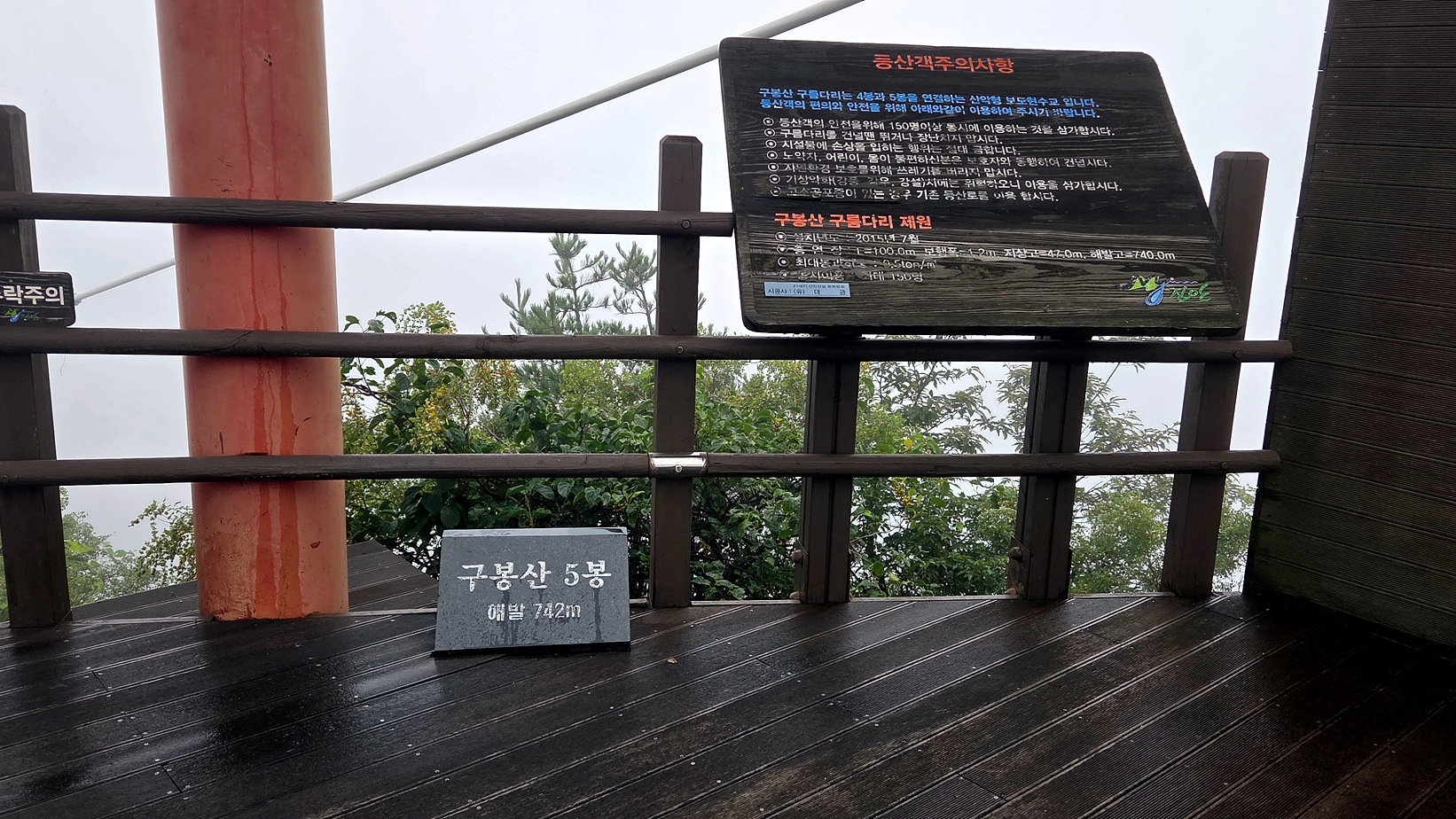 조금 내려서면 4봉과 5봉을 연결한 구름다리가 나옵니다. 제원을 보니 설치 연도 : 2015.7, 총연장 L=100m, 보행폭 1.2m, 지상고 47m, 해발고도 740m, 최대통과하중 : 0.5 ton/㎡, 동시이용 : 최대 150명