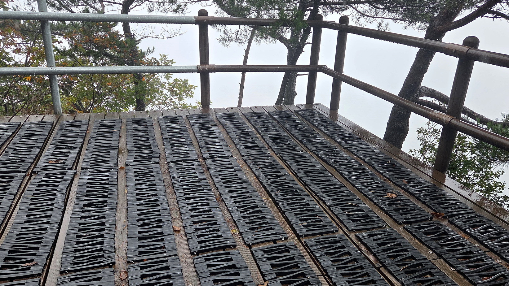 힘들게 전망대에 올랐네요. 2021.4.24 세정과 직원들과 구봉산 정상에 오른 후. 하산 길에 여직원이 다리를 접질려 119를 불러 이곳에서 헬리콥터를 타고 전북대병원으로 후송했던 곳이라 기억이 새롭네요.