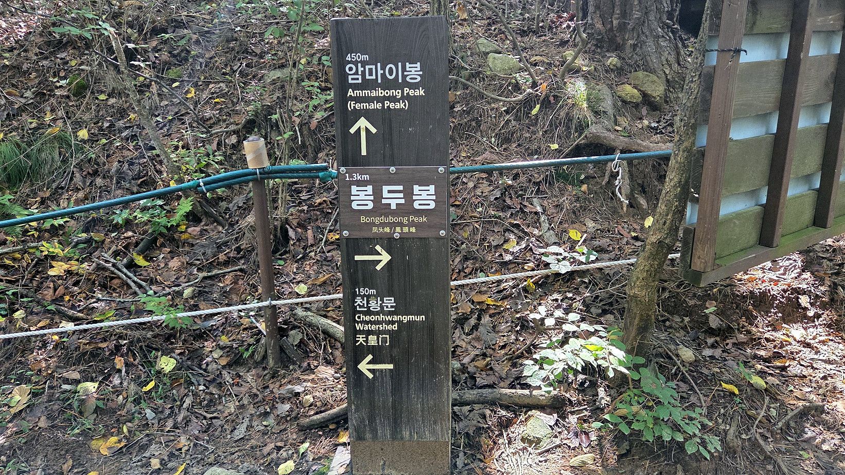 천황문에서 올라오는 길하고 만났네요. 이곳에서 암마이봉은 450m를 더 올라가야 됩니다.