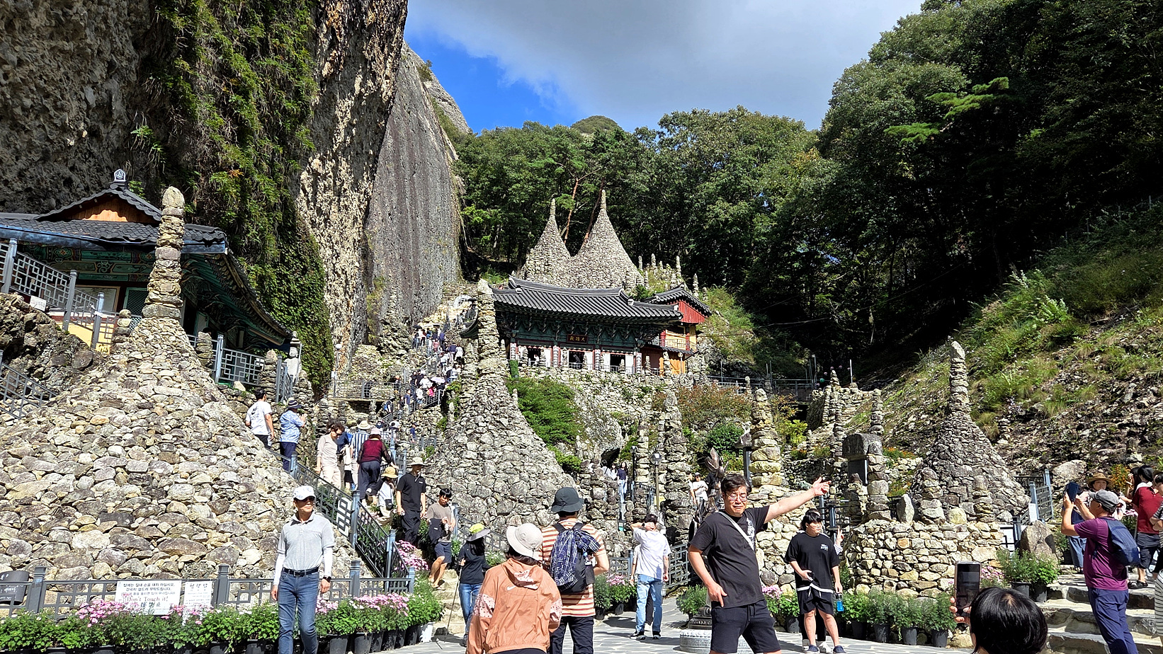 이렇게 산행을 마치고 나오는 길 입구까지 차가 밀린다. 아마 내가 다녀본 중 오늘이 가장 사람이 많은 듯하다. 진안시장에 들러 맛없는 돼지국밥, 순대국밥을 먹고 노랑코스모스 너머 마이산 사진을 찍기 위해 농업기술센터로 이동한다.
