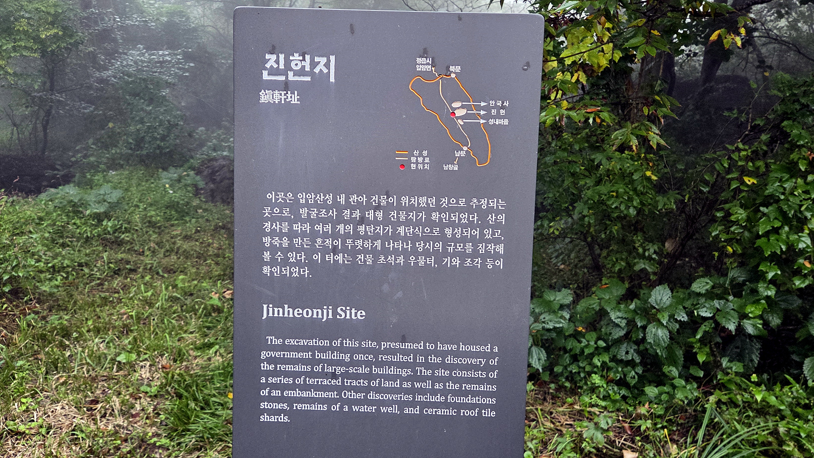 이곳은 입암산성 내 관아 건물이 위치했던 것으로 추정되는 곳으로, 발굴조사 결과 대형 건물지가 확인되었다. 산의 경사를 따라 여러 개의 평탄지가 계단식으로 형성되어 있고, 방죽을 만든 흔적이 뚜렷하게 나타나 당시의 규모를 짐작해 불 수 있다. 이 터에는 건물 초석과 우물터, 기와 조각 등이 확인되었다.