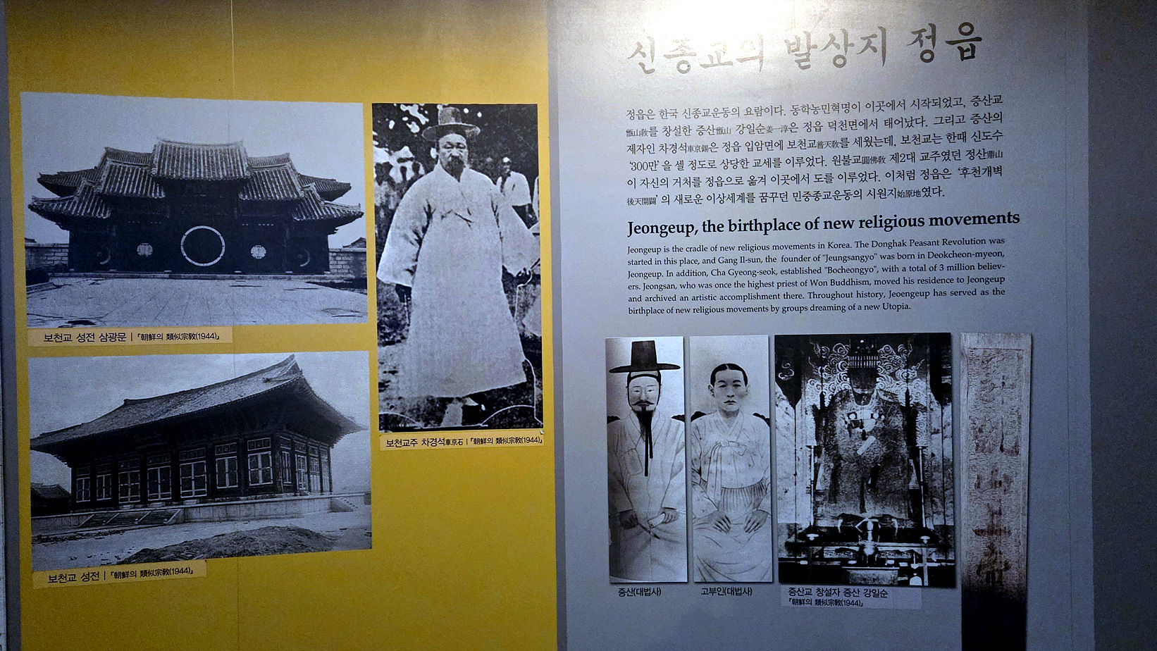 신종교의 발상지 정읍, 정읍은 한국 신종교운동의 요람이다. 동학농민혁명이 이곳에서 시작되었고, 증산교를 창설한 증산 강일순은 정읍 덕천면에서 태어났다. 그리고 증산의 제자인 차경석은 정읍 입암면에 보천교를 세웠는데. 보천교는 한때 신도수 '300만'을 셀 정도로 상당한 교세를 이루었다. 원불교 제2대 교주였던 정산 이 자신의 거처를 정읍으로 옮겨 이곳에서 도를 이루었다. 이처럼 정읍은 '후천개벽'의 새로운 이상세계를 꿈꾸던 민중종교운동의 시원지였다.