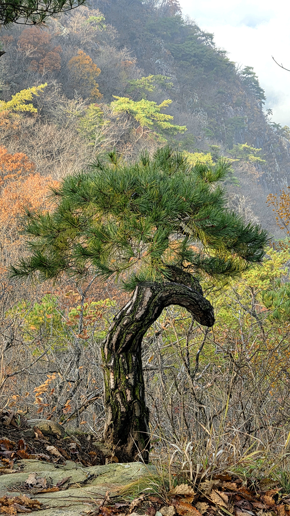 고산촌까지 3.75km를 내려가야 되네요. 고산촌에서 출발해서 올라오는 한 팀을 만나고, 내리막길 너덜지대에 급경사이고 낙엽이 쌓여있어서 길 흔적을 찾아 내려가기가 많이 힘드네요. 설악에 공룡능선보다 더 힘들다고 다들 아우성입니다.