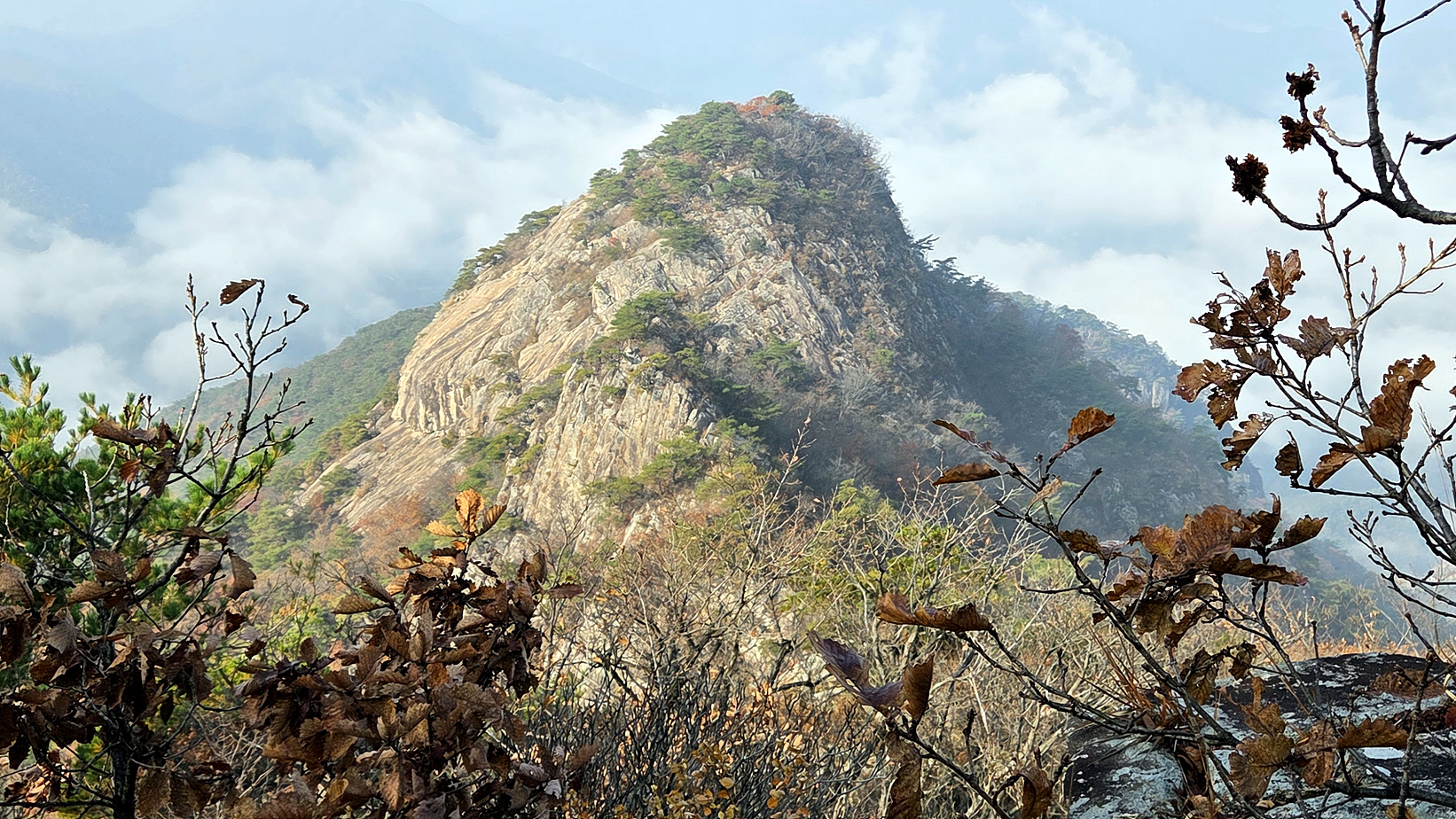 올라가야 될 감투봉 그 뒤가 천등산이다.