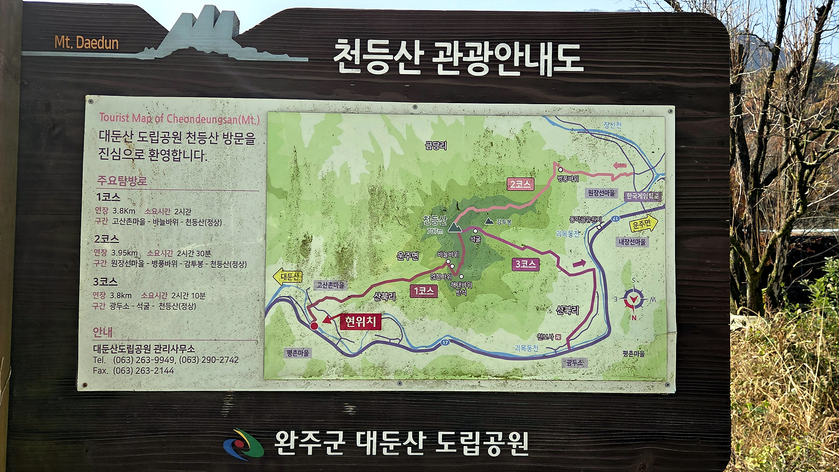 3. 코스 : 원장선마을~감투봉~천등산~고산촌마을, 7.75km, 3:10