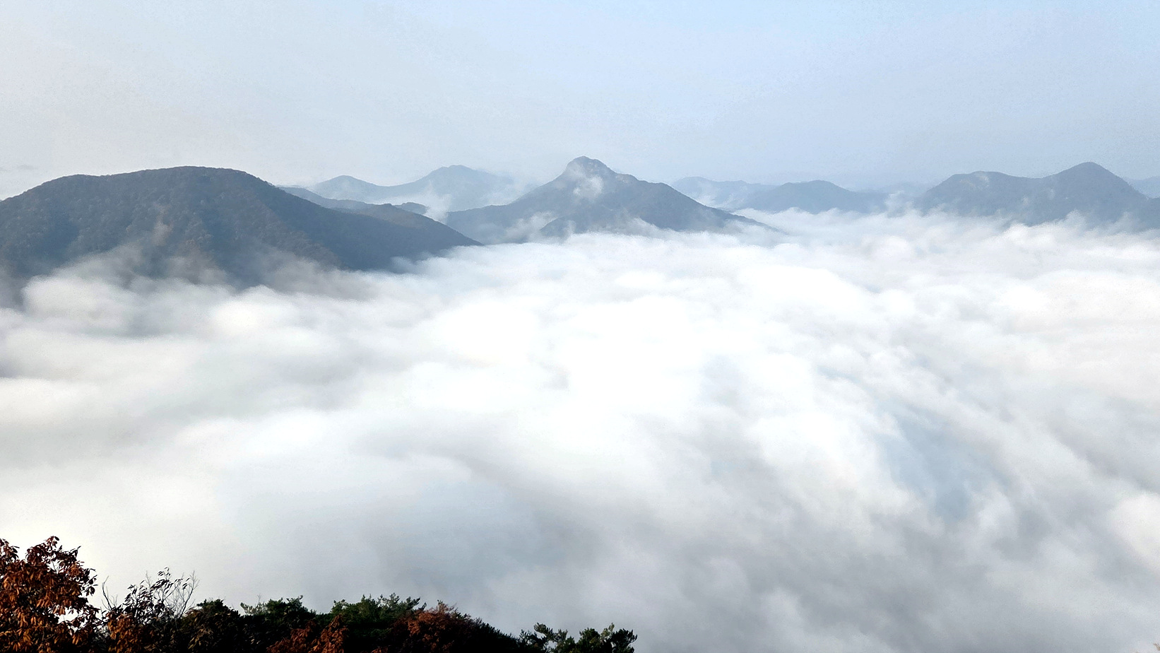 힘들게 능선에 올라서니 운해가 깔려 있네요.