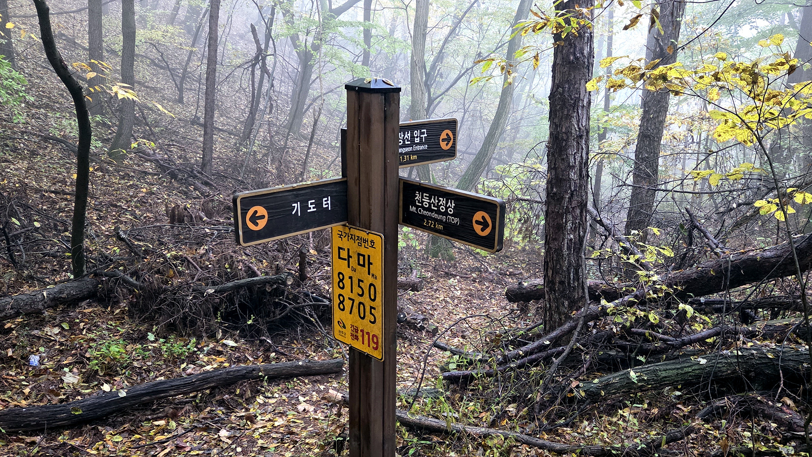 이곳에서 천등산 정상까지는 3.95km를 가야 된다.