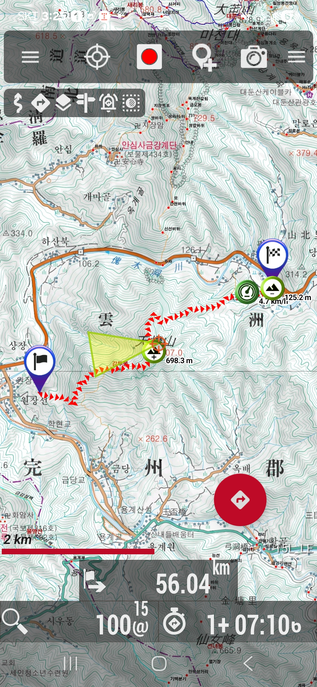 이렇게 산행을 마치고 오룩스맵을 확인했더니 7.75km, 3:10 동안 걸었네요. 태건에게 차량 지원 부탁, 차량을 회수해서 얼음골 유원지로 돌아와 점심으로 라면을 끓여 먹고 모임 마무리