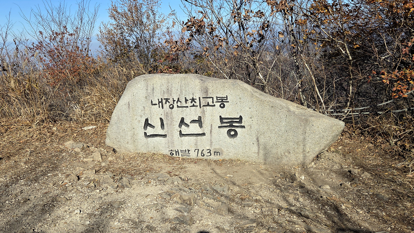 신선삼거리, 이곳에서 내장사 쪽으로 내려선다. 내려서는 길 경사도와 돌계단이 만만치 않네요. 내려가다 미끄러져 옷이 엉망이 되어 버렸네요.