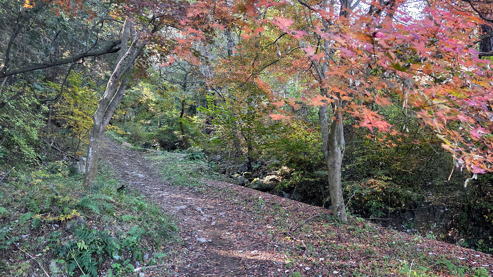 오름길 단풍이 들어 아름답네요.