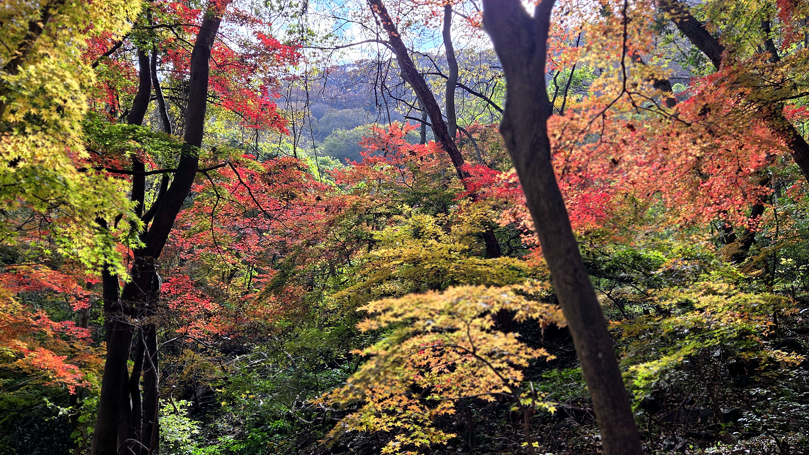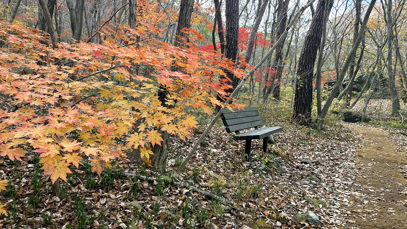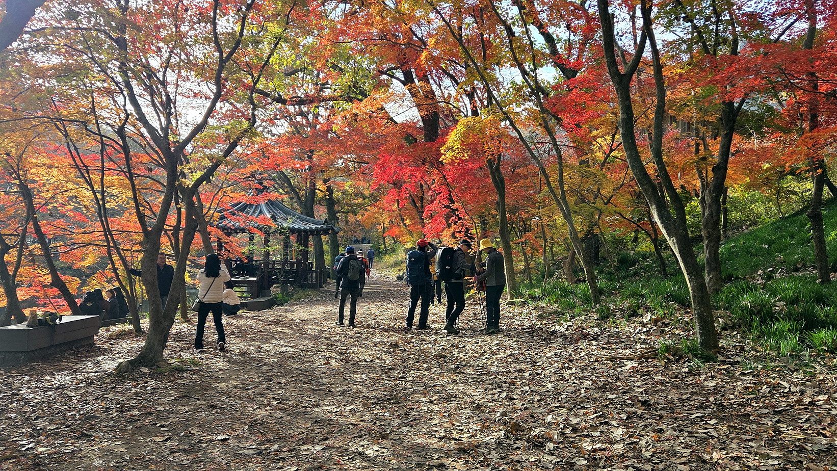내리막길 단풍이 멋지네요.