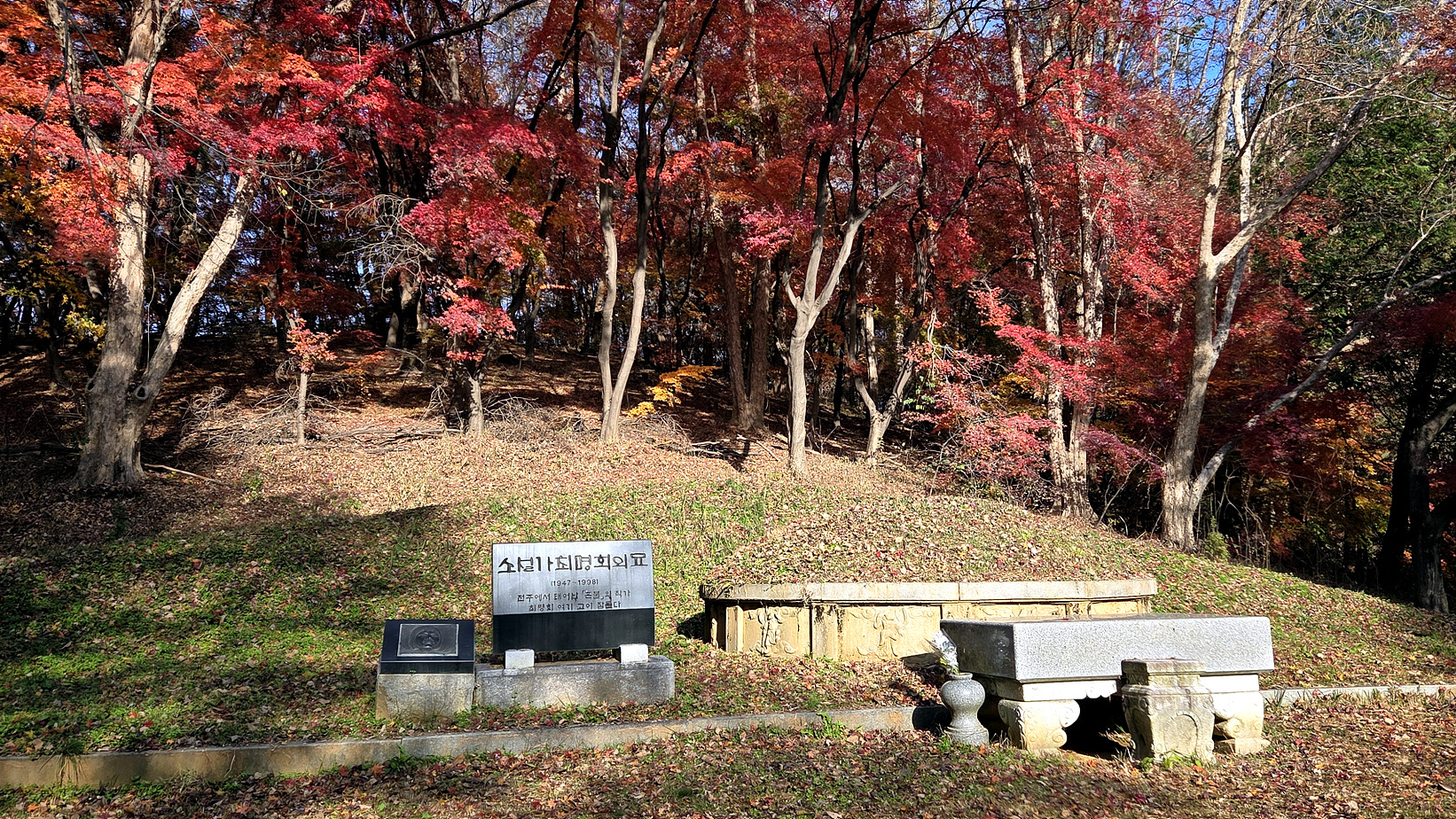 소설가 최명희의 묘 주변에 단풍이 멋지네요.
