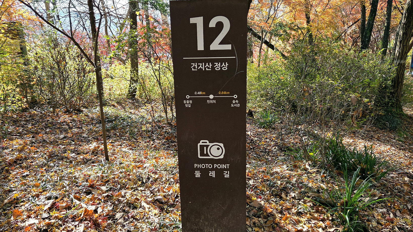 내 주변에 이렇게 아름다운 단풍구경을 할 수 있다는 장소가 있다는 것이 행복이라는 생각을 해보네요. 설명판, 지도에 표시된 건지산의 위치가 달라서 어렵게 찾아 오른 후 조경단으로 내려왔네요.
