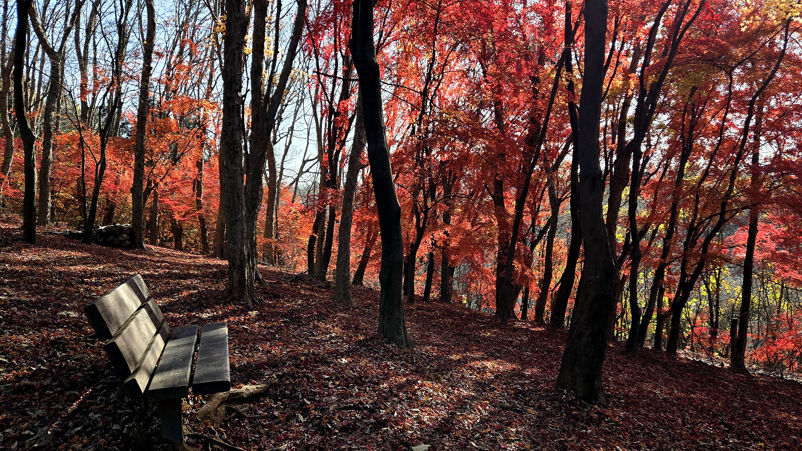 단풍은 오늘이 최고의 절정 같습니다. 아름답네요.