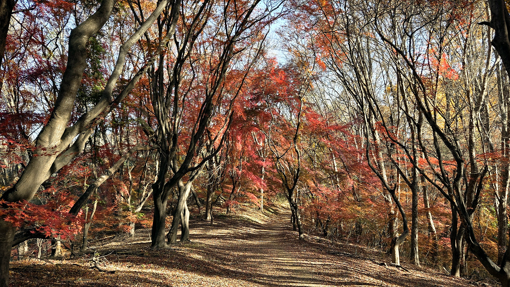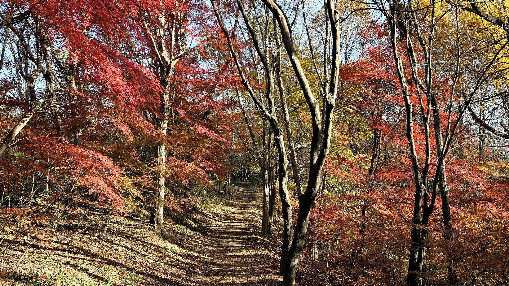 산책로 주변의 단풍이 너무 아름답네요.