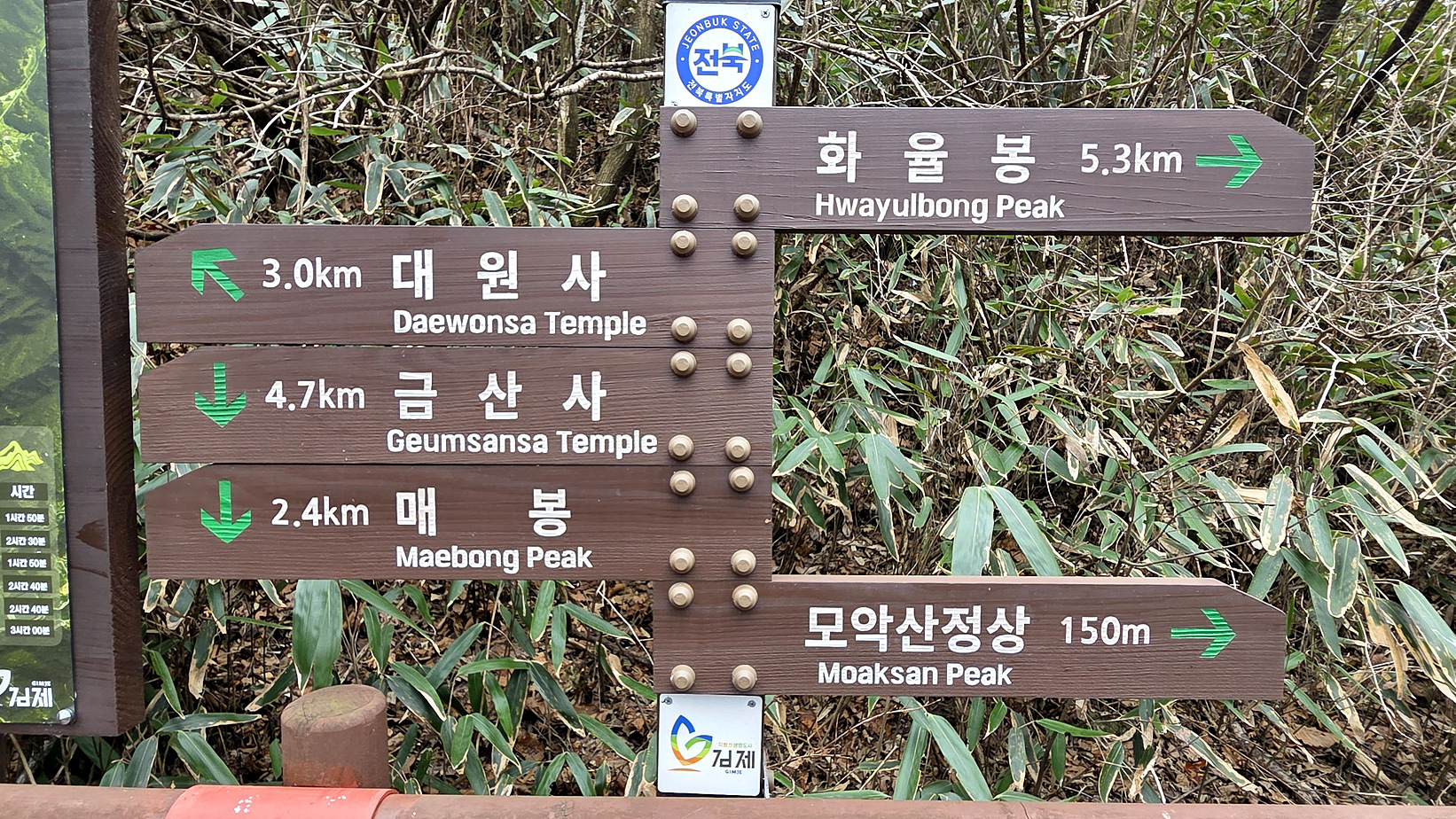 3. 코스 : 금산사주차장~닭지붕쉼터~백운정뽕밭~매봉~북봉~모악산~남봉~장근재~배재~대창골~금산사~주차장, 13km, 4:50