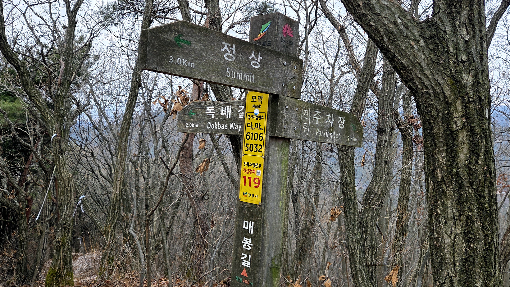 이정표를 새로 만들었다. 이곳에서 정상까지 4.1km를 가야 된다.