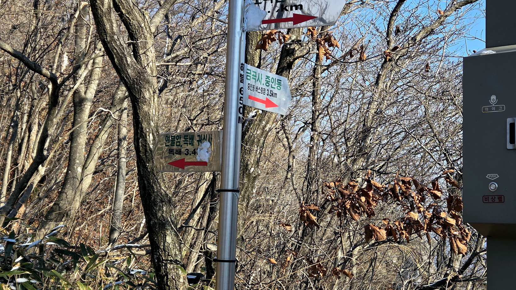 이정표 없는 금선암 내려가는 삼거리