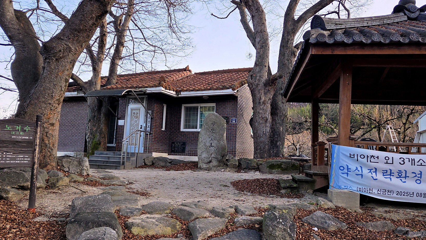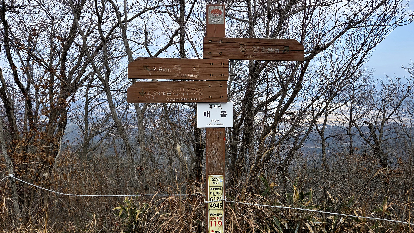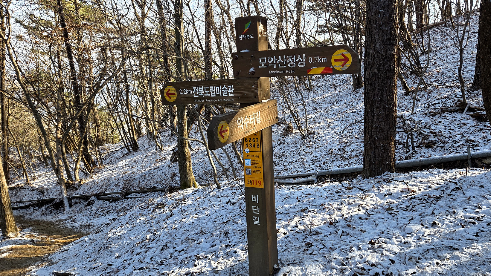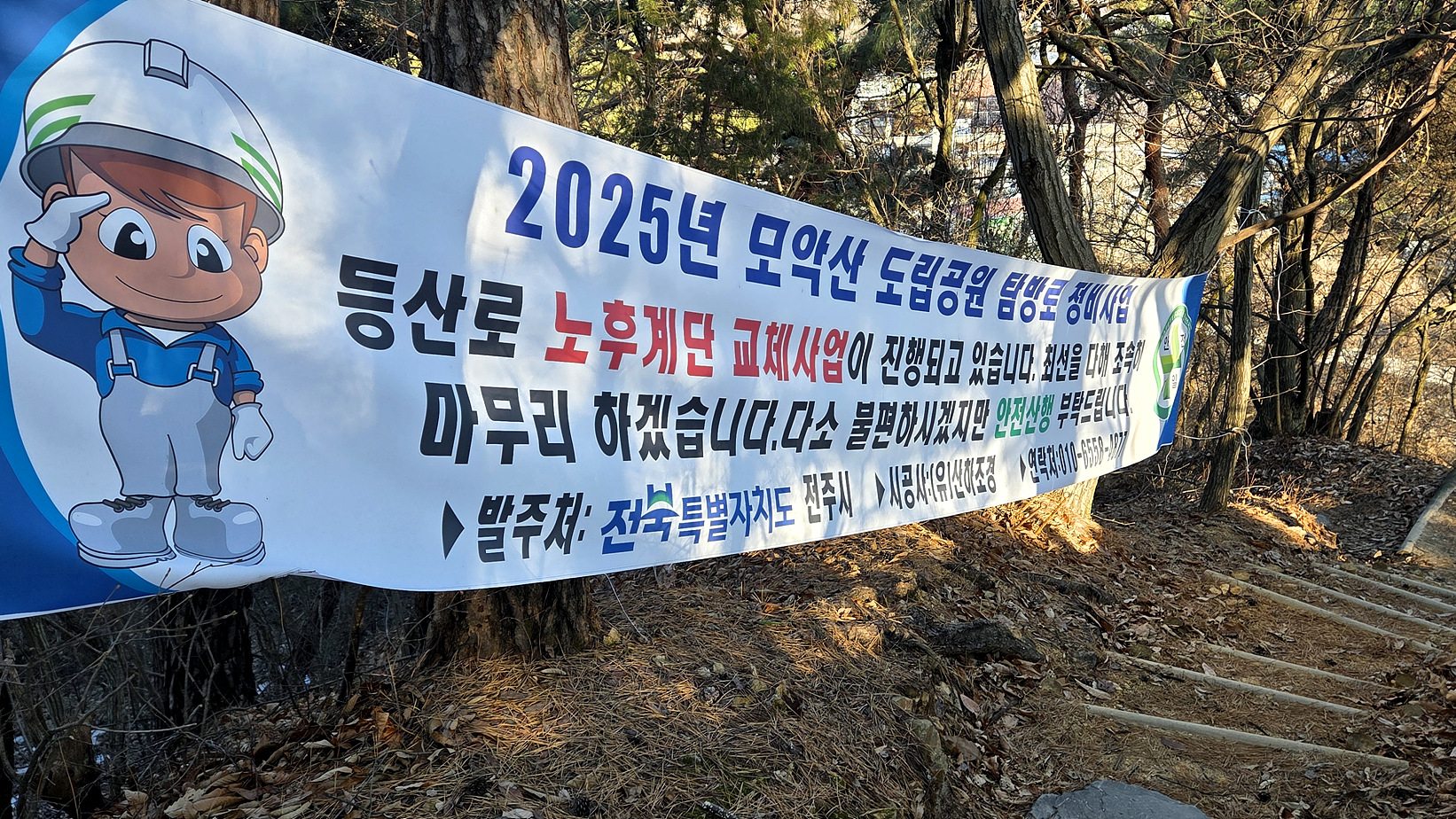 계단을 정비한 것 같아서 보니 “2025년 모악산 도립공원 탐방로 정비사업으로 노후계단 교체사업이 진행되고 있다.”