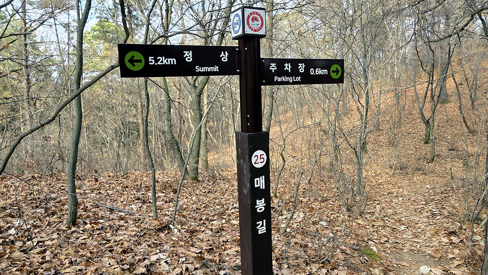 금곡암 가는 삼거리, 이곳으로 내려갈까 하다 25.10.25 전주 쪽 길게 돌기를 하다 중간에서 못 보던 길이 보여 내려가 버려 매봉길을 다 걷지 못했다. 오늘은 매봉길로 끝까지 내려가 보기로 한다.