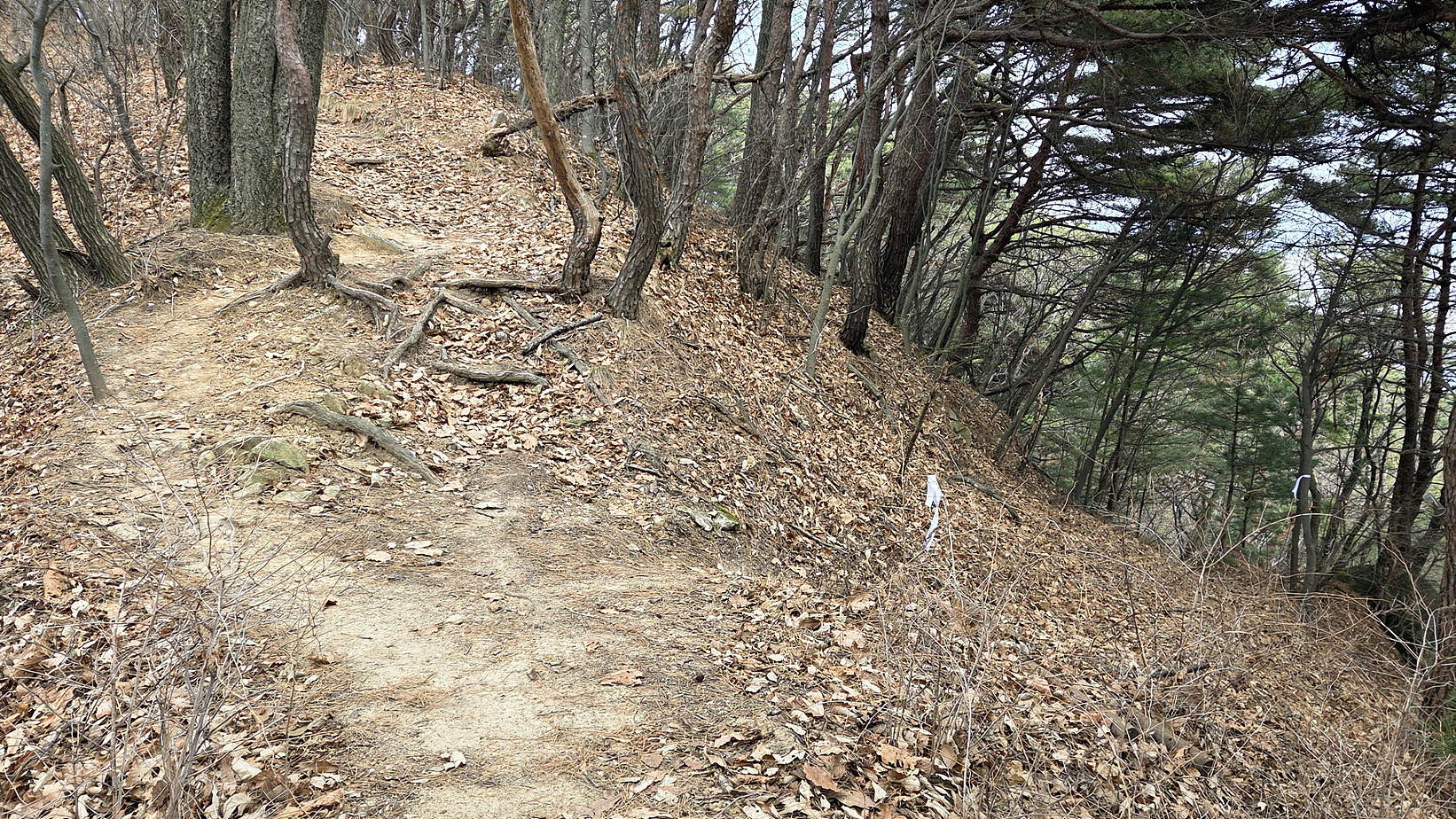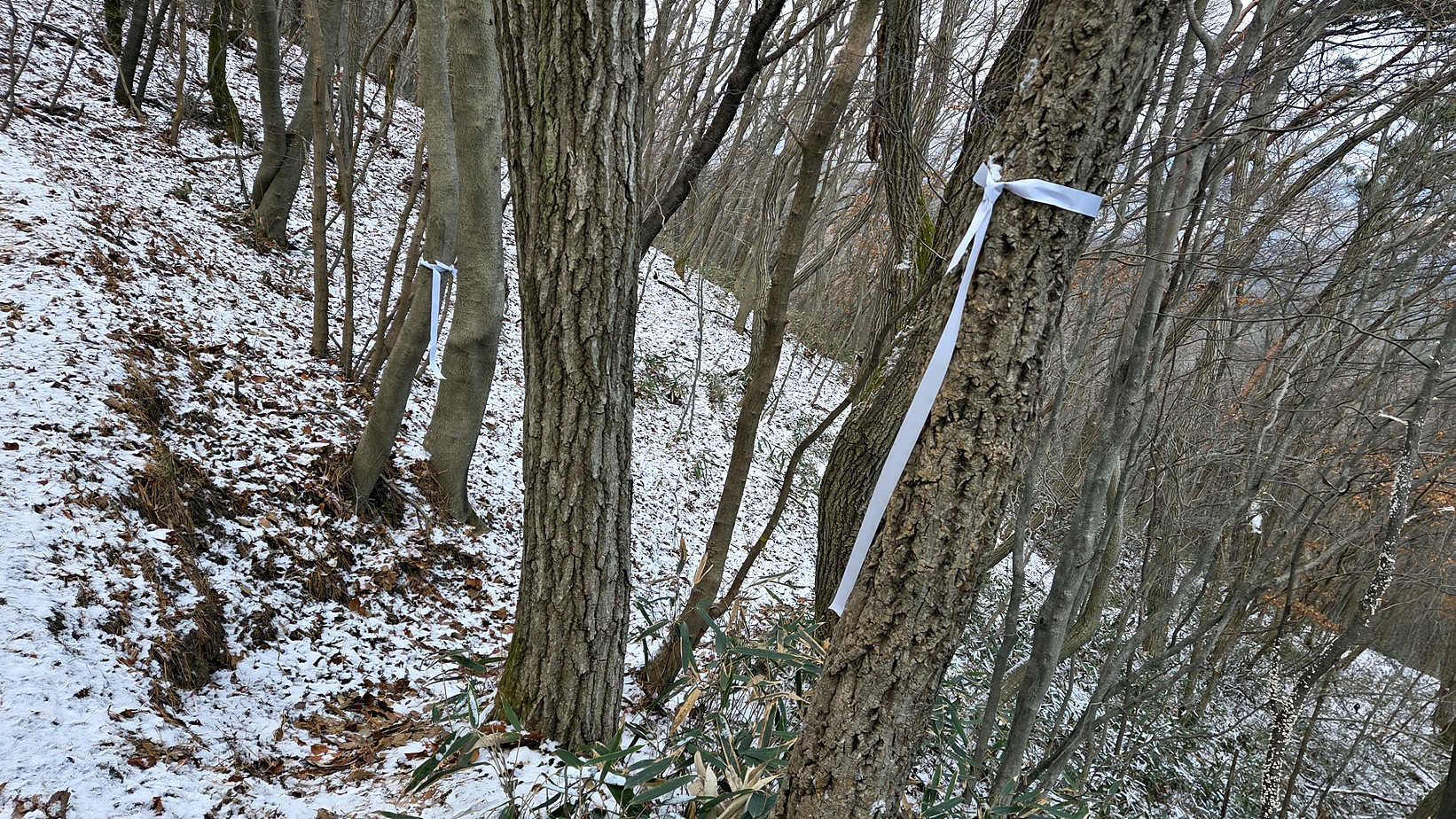 2025.10.25에 왔을 때는 등산로 아니라고 길을 막아 놓았던 것을 철거하고 리본을 달아 두어 내려가 보았다. 특별하게 변한 것은 없고 등산로에 리본을 달아 두기만 했다.