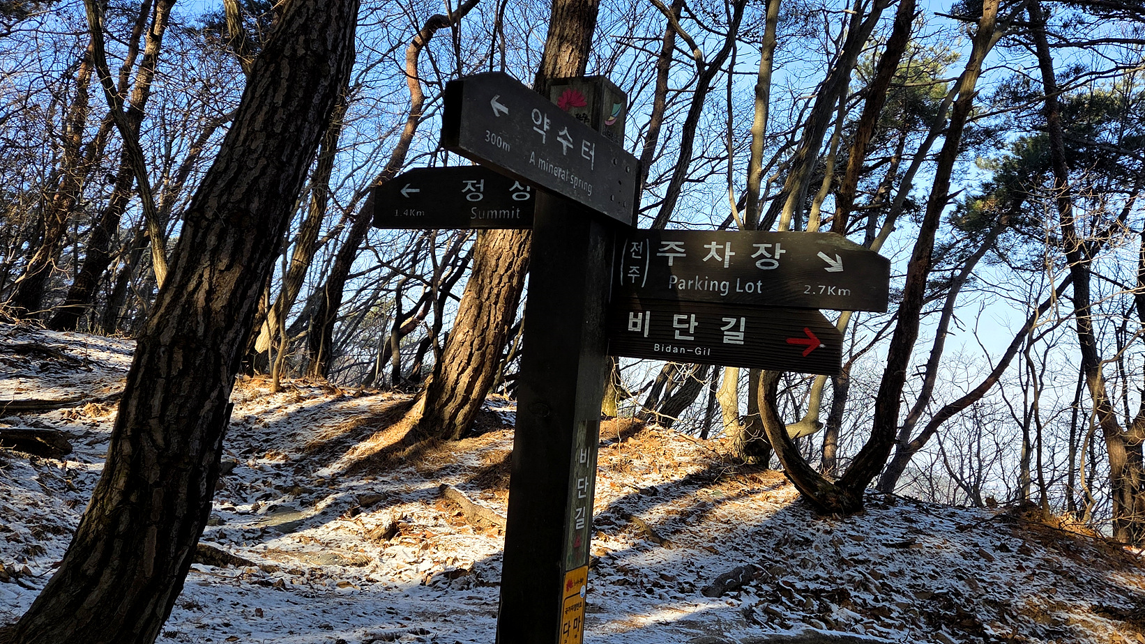 2026년 첫 산행은 어디를 갈까? 고민하다가 모악산 전주 쪽 길게 돌기를 하고 아지트에 내려가기로 한다. 신금마을 주차장에 주차하고 산행을 시작한다.