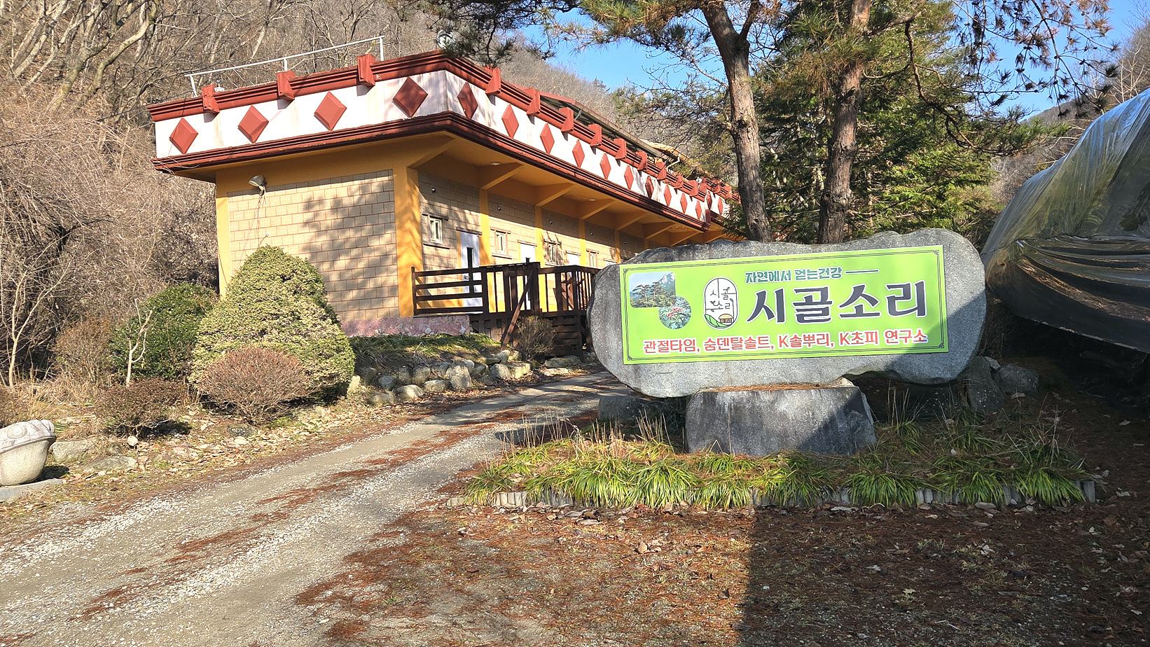 예전에는 민속한의원 입원실이었던 곳인데 지금은 시골소리로 바뀌었다. 관절타임, 숨텐탈솔트, K솔뿌리, K초피 연구소라는데 사람은 하나도 없는 듯하다. 이곳에서 임도를 따라 걷기 시작한다.