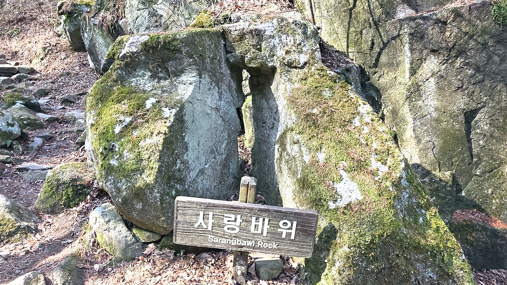 길이 녹아서 많이 미끄럽다. 내려가다 보면 보이는 사랑바위