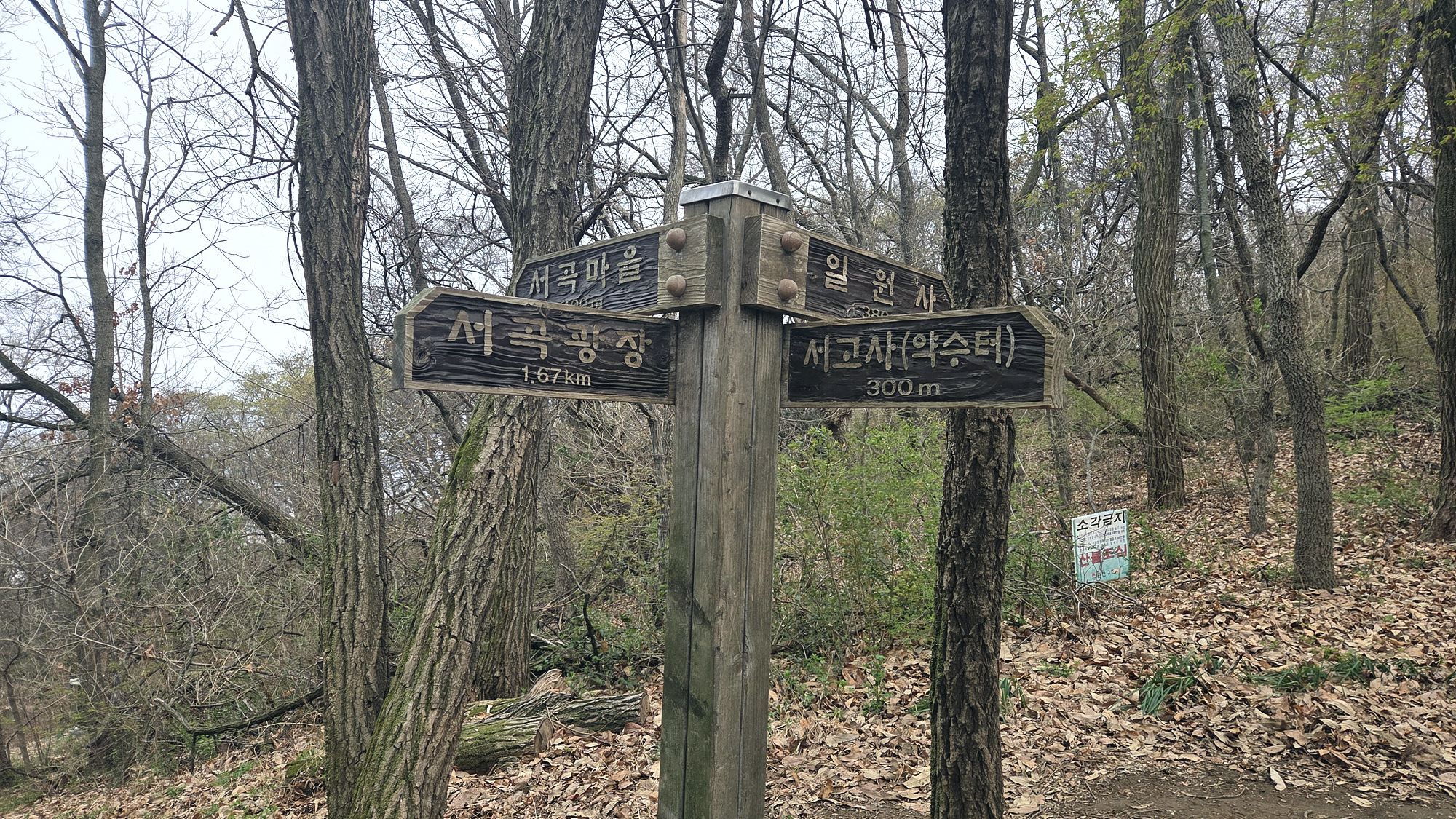 첫 번째 봉우리에 올라서는데 일원사 이정표가 보여 내려가 보니