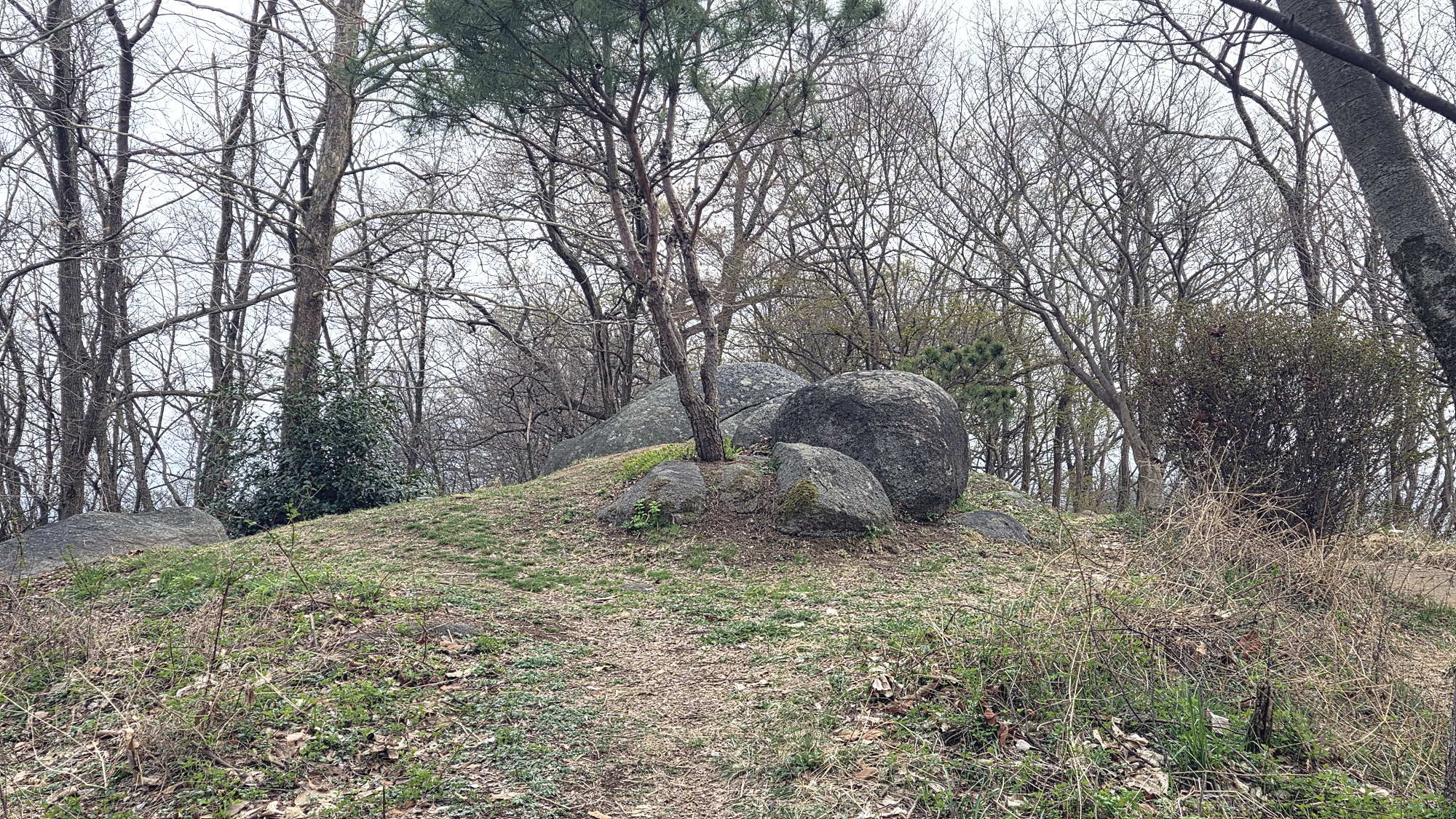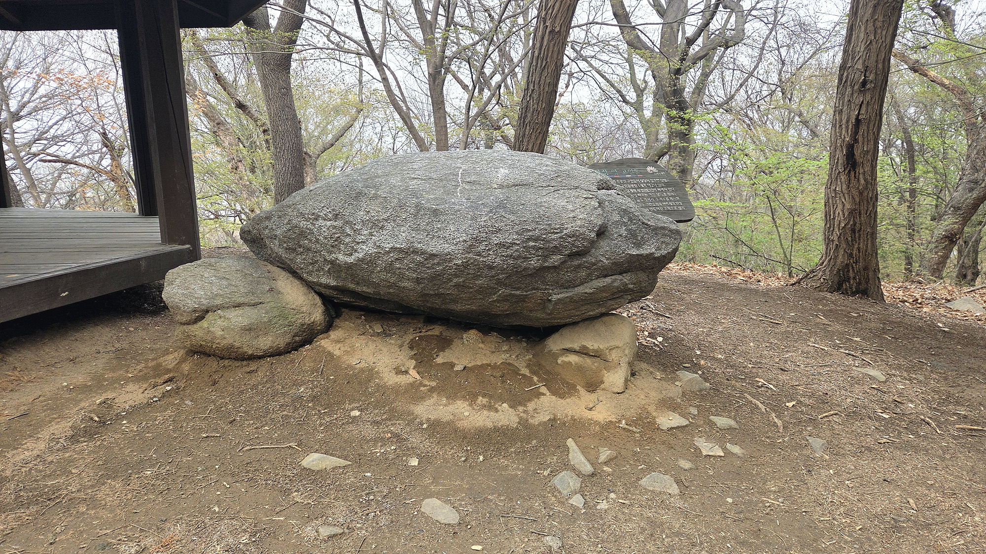 청동기 시대의 유물인 고인돌이 상당이 양호한 상태로 보존되어 있으나 고임돌받침 1개가 어긋나 있다. 이 고인돌에는 여러개의 성혈이 파여져 있다. 민간에 전하는 이야기에 따르면 아들 낳기를 원하는 부녀자 들이 영험 있는 돌을 갈아서 그 가루를 마시면 아들을 낳았다는 말이 있다. 고인돌위의 여러개의 원형 구멍도 이러한 속설에 따라 만들어진 흔적으로 생각된다. (설명판내용)