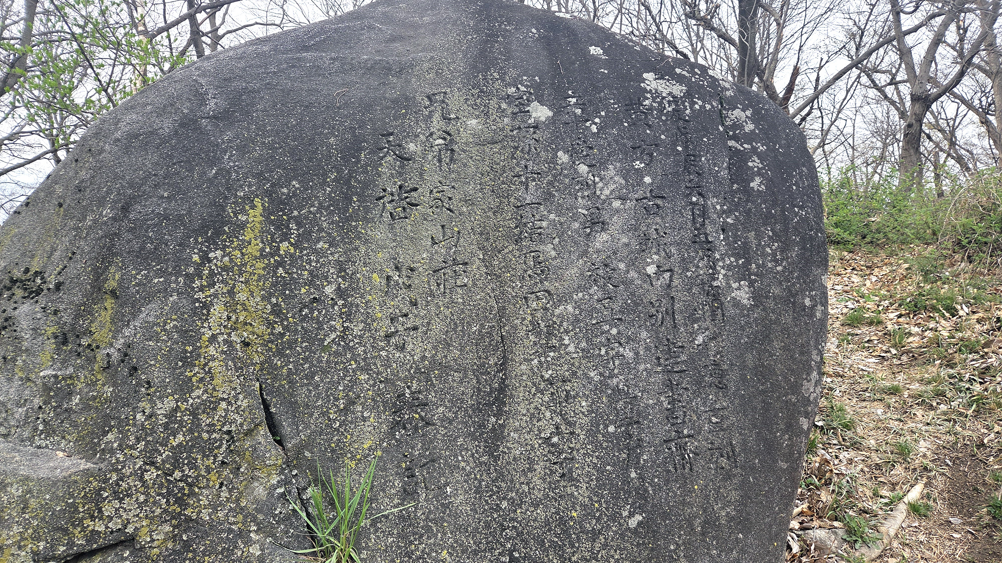 여의송계기념비, 이 비석은 청동기 시대 유물인 고인돌(지석묘) 위에 구멍을 파서 세워진 것이 특징입니다. 이 고인돌은 모양이 소를 닮았다고 하여 '우암(牛岩, 소바위)'이라고도 불립니다. 설명판은 낡아서 글을 읽을 수 없다.