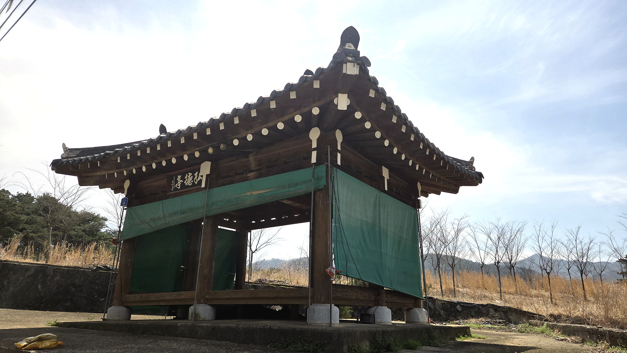 멋진 장소에 자리잡은 쉼터 같다. 아마 묘를 조성며 만든 쉼터 같다.